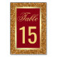 Numeração De Mesa Elegante Brilho de Folha Dourada Falsa Vermelho Ma
