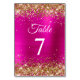Numeração De Mesa Elegante de folha rosa-quente com brilho Dourado