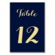 Crie seu próprio cartão de número de mesa personalizado, elegante, sofisticado, belo com tipografia dourada falsa, moderno e azul-marinho de alta qualidade. Perfeito para casamento, chá de noiva, jantar ou outra ocasião especial. Basta digitar o número da mesa para personalizar.