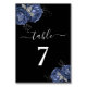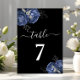 Elegante Preto Azul Floral Número da Mesa.