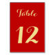 Crie seu próprio rótulo personalizado, elegante, sofisticado, belo falso dourado tipografia script, moderno vermelho chic e falso dourado, cartão de número de mesa de alta qualidade. Perfeito para casamento, chá de noiva, jantar ou outra ocasião especial. Basta digitar o número da mesa, para personalizar.