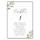 Cartão de número de tabela de assentos de casamento personalizado, com design de folhagem verde elegante moderna, com número de tabela personalizado e nomes.