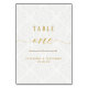 "Número da Mesa de Casamento Elegante com Renda Branca e Brilho Dourado 1." Números de 1 a 12 estão disponíveis em camadas ocultas neste design. Podemos criar números adicionais para casamentos maiores. Fundo branco com padrão de damasco branco com tipografia dourada brilhante "Número da Mesa Um". Design e arte criados pela artista licenciada internacionalmente, Audrey Jeanne Roberts, direitos autorais.