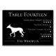 Uma mesa engraçada e única ou número de equipe. Perfeito para amantes de animais de estimação e cães, este número de tabela monocromática preto e branco é um de um conjunto de múltiplas raças de cães. A placa lê o número da tabela, seguido por The Whippets e uma imagem de contorno branca de um Whippet. Como piada sobre as personalidades dos convidados, quatro traços de cães são listados, incluindo amizade para com estranhos, potencial de baba, tendência ao latido e uividade e brincadeira, ao lado de uma classificação de cinco estrelas. O cartão de mesa é adequado para um casamento, festa, teste ou qualquer outro evento que exija uma equipe, mesa ou plano de assentos.
