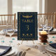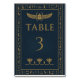 Este cartão de número de mesa inspirado no Egito apresenta um escaravelho dourado com asas, bordas hieroglíficas e um desenho de lótus em flor. O número é editável para qualquer mesa. Perfeito para um casamento elegante com tema egípcio, este cartão combina com cartões de lugar, menus e gráficos de assentos correspondentes.