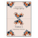 Bonitos Cartões de Mesa de Casamento Floral de Laranja Queimada e Azul.