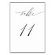 Estes cartões de mesa brancos minimalistas vão adicionar um toque de elegância às suas configurações de casamento. Este simples modelo de design apresenta um roteiro de caligrafia negra, com letra manual, que diz "Mesa 11". Por favor, veja a nossa loja I Love Weddingz para mais cartas de números de mesa neste conjunto. Os melhores votos para o seu casamento e casamento! Desenhada por Susan Coffey.