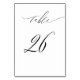 Estas elegantes cartas de números de mesas brancas de casamento apresentam um moderno roteiro de caligrafia preto com letra de mão que diz "Mesa 26". Por favor, veja a nossa loja I Love Weddingz para mais cartas de números de mesa neste conjunto. Os melhores votos para o seu casamento e casamento! Desenhada por Susan Coffey.
