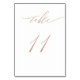 Estes cartões de mesa de casamento brancos e rosa de ouro minimalistas vão adicionar um toque de elegância às suas configurações de casamento. Este simples modelo de design apresenta um moderno faux rosa gold script que diz "Mesa 11". Por favor, veja a nossa loja I Love Weddingz para mais cartas de números de mesa neste conjunto. Os melhores votos para o seu casamento e casamento! Desenhada por Susan Coffey.