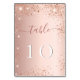 Um fundo rosa de ouro, decorado com faíscas falsas. Personalize e seus números de tabela. O menu de janto correspondente está disponível em nossa loja!