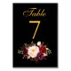 Cartão de Mesa Preto e Dourado para Borgonha Floral com Aquarela