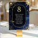 Guie seus convidados sob as estrelas com este Número de Mesa de assento de casamento do sol e da lua celestial estrela cadente Azul. Projetado contra um céu azul meia-noite romântico inspirado em uma noite estrelada sonhadora, esta peça elegante apresenta uma lua crescente brilhante, sotaques de sol radiantes e um delicado padrão de constelação. Uma graciosa estrela cadente varre o pano de fundo cósmico, aprimorado por um brilho suave de halo que adiciona profundidade e charme místico. Perfeito para casais que planejam uma celebração celestial, este número de mesa traz beleza refinada e estilo coeso para a decoração da sua recepção, capturando a magia de uma história de amor escrita sob um céu azul meia-noite cintilante.