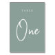 Cartões simples e chic em Eucalyptus Green e White fazem uma declaração elegante no seu casamento ou evento. Design apresenta "mesa [number]" em uma combinação de olhares de serif clássica e de caracteres de script manuscritos. Design repete-se de ambos os lados. Cartões numerados individualmente vendidos separadamente; solicite cada número de tabela individualmente da nossa coleção.