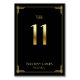 Excelente Gatsby Art Deco cartões de números da tabela de casamento com ouro número 11 e texto personalizável, onde você pode adicionar seus nomes e data de casamento, impressos em fundo preto