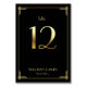 Excelente Gatsby Art Deco cartões de números da tabela de casamento com ouro número 12 e texto personalizável, onde você pode adicionar seus nomes e data de casamento, impressos em fundo preto