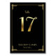 Excelente Gatsby Art Deco cartões de números da tabela de casamento com ouro número 17 e texto personalizável, onde você pode adicionar seus nomes e data de casamento, impressos em fundo preto