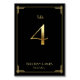 Excelente Gatsby Art Deco Cartões da mesa de casamento com o ouro número 4 e texto personalizável, onde você pode adicionar seus nomes e data de casamento, impressos em fundo preto