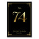 Excelente Gatsby Art Deco Cartões da mesa de casamento com o ouro número 74 e texto alterável, onde você pode adicionar seus nomes e data de casamento, impressos em fundo preto