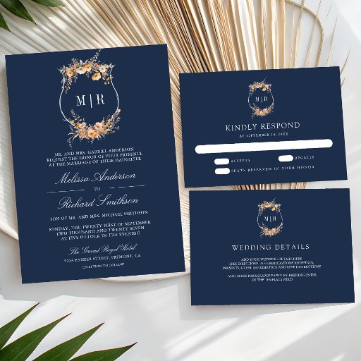 Fall Wildflower Crest Navy Blue Wedding Criado por Shabbir D