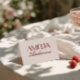 Classy and fancy wedding place card designed for a clean and elegant old money reception table setting. This folded escort card features a handwritten script wedding name paired with contemporary typography. The burgundy deep red and cream wedding decor adds a fresh, stylish touch to your wedding. Perfect as a custom guest name card for a chic and simple wedding celebration. Use this elegant folded place card to elevate your modern reception table decor. A sophisticated contemporary wedding table card that complements any minimalist wedding theme.