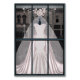 Perfeito para qualquer noiva com charme feminino e estilo vintage. Um belo vestido de noiva sereia, rosa claro, em uma vitrine de loja vintage chique, o interior do cartão mostra o interior da loja, com o vestido e véu tendo sido removidos do manequim e embrulhados em grandes caixas cor-de-rosa com laços rosa. Ótimo para a noiva, parabéns pelo noivado ou eventos relacionados ao casamento.