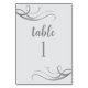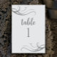 Crie um belo cartão de número da mesa de aniversário de casamento personalizado simplesmente adicionando os números. Meus wisps originais de gradiente de cinza de designer de galerias irradiam de ambos os lados. Todo o texto sobre o fundo da cinza é editável. Você também pode remover o design, se desejar. Isso seria uma adorável decoração de mesa de aniversário de casamento para uma festa de casamento ou aniversário. Veja a minha coleção de aniversários de 25 de prata para guardanapos, aparéteres, favores, convites e decorações.