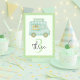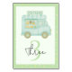Adicione um toque lúdico e coordenado à comemoração de aniversário do seu filho com esta adorável placa de número da mesa-caminhoneira do Sorvete. Projetada em matizes verdes e verdes pastéis suaves com um caminhão com sorvete de aquarelas e borrachas coloridas, esta placa de mesa vertical traz um doce encanto para a configuração da sua festa temática. Perfeito para sorvetes sociais, aniversários de verão ou festas de sobremesa pastel.