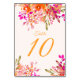 Lindo cartão de número de mesa floral. Decorado com um buquê floral em aquarela elegante e letra com sensação vintage. Você pode personalizar cada cartão com o número da mesa. Perfeito para aniversários, casamentos, chá de noiva, chá de bebê, aniversários de casamento e outras celebrações.