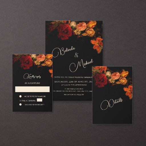 Fine art dark moody floral wedding table numbers seating chart card.