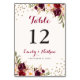 Numeração De Mesa Floral de Confetes Borgonha
