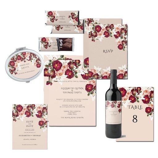 Cartão de mesa elegante para o seu jardim, átrio, casamento de verão, primavera. O cartão é decorado com lindas flores rosa e mauve e gramíneas secas.