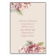 Este romântico cartão de mesa floral apresenta cor d'água rosa e hydrangeas pinceladas. Um delicado buquê de flores de hydrangea é ilustrado no topo, e outro no fundo. O número da tabela é impresso em uma fonte elegante, seguida dos nomes do casal e da data do casamento. Uma lista de nomes de convidados é impressa no verso.
