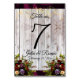 Esta design tem uma elegância rústica, mantendo-a um tema simples. Buquês de flor selvagem em lindas cores quentes do verão e luzes cintilantes com fita roxa sobre um lugar de fundo de madeira de casca para o número da mesa, nome do casal e data do casamento. Projetado para coordenar com a coleção Rustic Wildflower & Ribbon. Para alterar os detalhes, clique em "Personalizar". Para mover o texto ou alterar o tamanho, a fonte ou a cor do texto, clique em "Clique para personalizar mais"