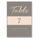 Esta placa de número de tabela apresenta um tipo de script de pincel visual com letra manual com uma textura de folha de ouro rosa faux. Personalize com os nomes da noiva e do noivo e a data do casamento.