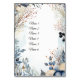 O design apresenta um arranjo etéreo e macio de tons sujos, azuis e mudados, com folhagem delicada, bagas e flores que circundam as bordas. A estrutura é predominantemente decorada com folhas do estilo aquarela, flores de algodão e bagas escuras, dando a ela uma sensação rústica mas elegante. A área central é deixada vazio, ideal para texto ou detalhes de eventos, cercada por formas orgânicas que evocam um humor sereno e autóctone. Este sofisticado, inspirado na natureza funcionaria lindamente para uma coleção de casamentos com uma atmosfera romântica e eterno.