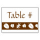 Esta mesa apresenta uma banda de sotaque em castanho de chocolate com um padrão de folhas de queda e bolotas decorando-a. Muito espaço fica acima da banda para que você possa preencher os nomes dos seus convidados ou o número da tabela, para que a sessão possa ser feita mais facilmente no seu evento de outono. Verifique os outros produtos no conjunto Folhas de outono no Chocolate para criar uma pesquisa verdadeiramente coordenada para o seu evento.