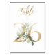 Lindo cartão de número de mesa com um motivo botânico - uma ilustração em aquarela de folhas verdes e douradas. Mesa 26. Por favor, verifique todos os números disponíveis