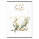 Linda carta de número de mesa com um motivo botânico - uma ilustração de aquarela de folhas verdes e douradas. Mesa 32. Por favor, verifique todos os números disponíveis