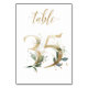 Linda cartão de número de mesa com um motivo botânico - uma ilustração em aquarela de folhas verdes e douradas. Mesa 35. Por favor, verifique todos os números disponíveis
