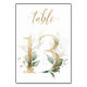 Linda cartão de número de mesa com um motivo botânico - uma ilustração de aquarela de folhas verdes e douradas. Mesa 13. Por favor, verifique todos os números disponíveis