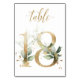 Lindo cartão de número de mesa com um motivo botânico - uma ilustração em aquarela de folhas verdes e douradas. Mesa 18. Por favor, verifique todos os números disponíveis