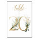 Linda carta de número de mesa com um motivo botânico - uma ilustração de aquarela de folhas verdes e douradas. Mesa 20. Por favor, verifique todos os números disponíveis