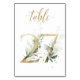 Lindo cartão de número de mesa com um motivo botânico - uma ilustração em aquarela de folhas verdes e douradas. Mesa 27. Por favor, verifique todos os números disponíveis