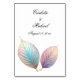 Esta imagem apresenta um design limpo e sofisticado centrado em folhas delicadas e em tons pastel. As folhas têm uma qualidade translúcida, quase etérea, com tons suaves de azul, rosa e lavanda se misturando perfeitamente. O fundo branco minimalista realça a elegância do design, chamando a atenção para os detalhes sutis da folhagem. Isso cria uma estética calmante e inspirada na natureza, perfeita para ocasiões modernas e românticas.