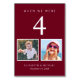Divirta-se com sua decoração de recepção de casamento com estas placas de números de mesa vermelho e burguês onde cada número de mesa corresponde a fotos da noiva e do noivo na mesma idade. Por exemplo, para a Mesa 4, personalize o número da tabela com "4" e adicione fotos da noiva e do noivo aos 4 anos de idade.