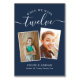 Lembre-se e divirta-se com seus números de recepções de casamento - Esses elegantes números simples de tabelas lhe dão a opção de incluir uma fotografia da noiva e do noivo na mesma idade que o número da mesa, o nome da noiva e do noivo e a data do casamento. A cor de fundo é marinho azul com texto branco, mas eles podem ser mudados para qualquer cor para se adequarem ao seu casamento.