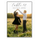 Este cartão de mesa de casamento apresenta um design romântico e caprichoso com uma fotografia de dois indivíduos dançando em um campo repleto de flores brancas, banhados pela luz quente do nascer ou pôr do sol. O layout é centralizado com amplo espaço negativo, criando uma atmosfera aberta e alegre. A tipografia de letra cursiva elegante no topo indica "mesa 12", enquanto uma fonte serifada menor lista nomes, adicionando um toque de formalidade à cena encantadora. A paleta de cores naturais de verdes, brancos e tons dourados realça o clima sereno e íntimo, tornando-o perfeito para celebrar o amor e a conexão em seu evento especial.
