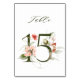 Esta tabela contém um número verde decorado com ilustrações aquáticas de flores e folhas em cor de pêssego, rosa-pincel, vermelho, terracota e verde. Este número de tabela é perfeito para casamentos, graduações, chás de fraldas, chás de panela, aniversários e outros eventos. Mesa 15. Verifique todos os números disponíveis.