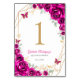 Numeração De Mesa Fuchsia Pink Gold Floral Quinceanera