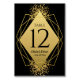 Um design luxuoso com o número de dentro a grande forma de diamante de ouro com um borrão de ouro reluzente sobre fundo preto puro. Você pode adicionar cada número de tabela indo para o menu personalizar. Isto é parte de uma bela suíte de casamento com cardápios, cartões de lugar, guardanapos e muitos outros itens.